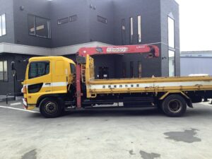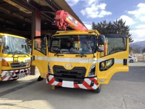 約20年間、私たちの作業を支え続けてくれた旧車両には、心から感謝の気持ちでいっぱいです。今まで東日本大震災の復興など、わたしたちと一緒に地域を支えてきた仲間と考えると寂しい気持ちになります。長年の感謝を込めて「お疲れ様でした」と伝えたいです。移動式クレーン車は、重い荷物を吊り上げて運ぶクレーン付きのトラックで、建設現場などで大活躍します。